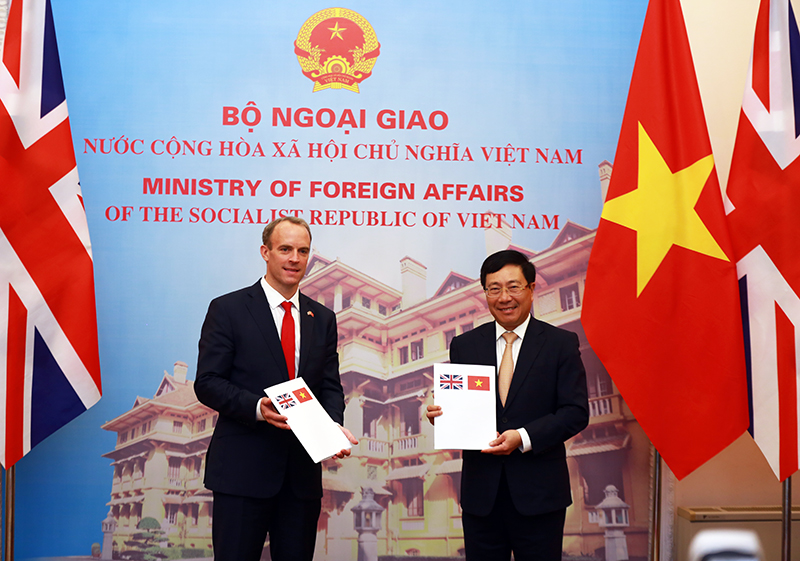 越南政府副总理兼外交部长范平明与英国外交和联邦事务大臣多米尼克·拉布——图片:VGP |