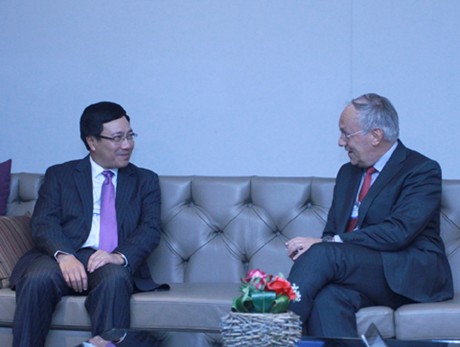 越南政府副总理兼外交部部长范平明会见瑞士经济部长施耐德阿曼