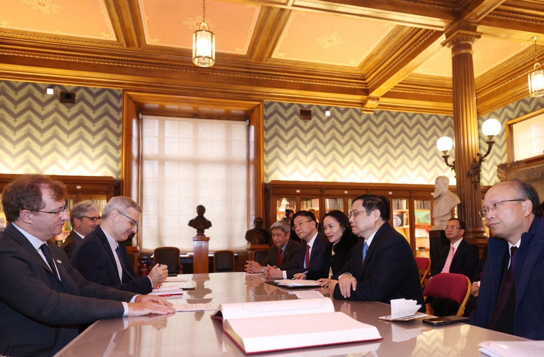 范明正总理与越南高级代表团对法国巴斯德研究院进行工作会议——图片:越通社 |