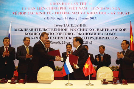 会议结束,两位副总理签署越俄政府间联合委员会第16次会议文件,为展开两国未来的经贸、科技、教育领域的合作进程奠定法律基础,同时同意越俄政府间联合委员会第17次会议于2014年下半年在俄罗斯举行。
