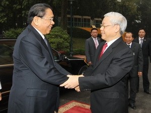 2012年12月26日越共中央总书记阮富仲欢迎老挝人民革命党中央总书记、国家主席朱马里对越南进行正式访问。 |