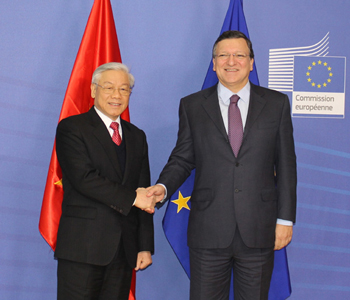 在当天与欧洲委员会主席曼努埃尔•巴罗佐举行的会谈上,欧盟委员会主席巴罗佐重申,欧盟委员会一直重视并高度评价与作为活跃发展、在东南亚地区的地位日益提高的国家的越南的合作关系。
