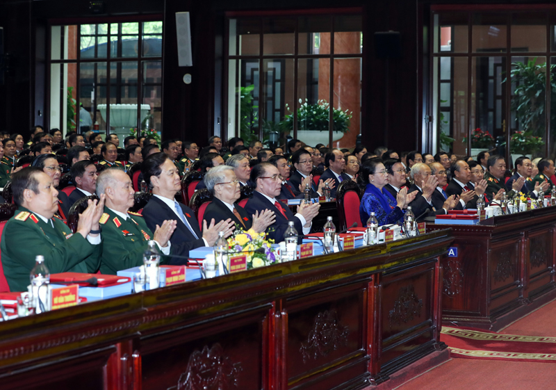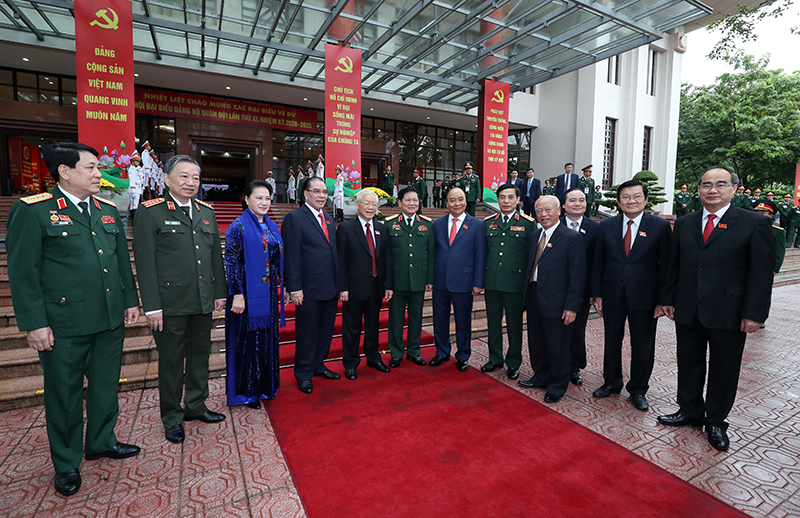 越共中央政治局委员、政府总理阮春福,越共中央政治局委员、国会主席阮氏金银,原越共中央总书记农德孟,原国家主席陈德良,原国家主席张晋创,原政府总理阮晋勇,原国会主席阮文安,原国会主席阮生雄等领导人出席大会。