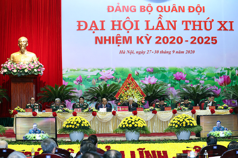 大会听取越共中央总书记、国家主席阮富仲发表指导性讲话,讨论中央军委在大会上做的政治报告。