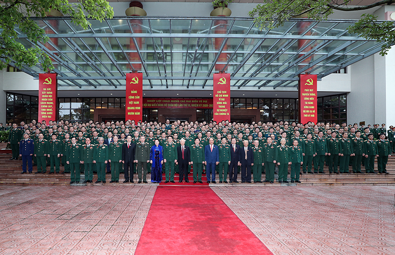 越共中央总书记、国家主席阮富仲和与会代表们合影 |