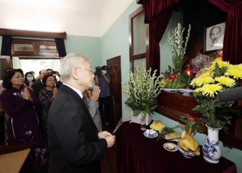 (VGP)值此八月革命和九·二国庆75周年之际,9月1日上午,越共中央总书记、国家主席阮富仲前往胡志明主席故居和纪念堂进香缅怀胡志明主席。