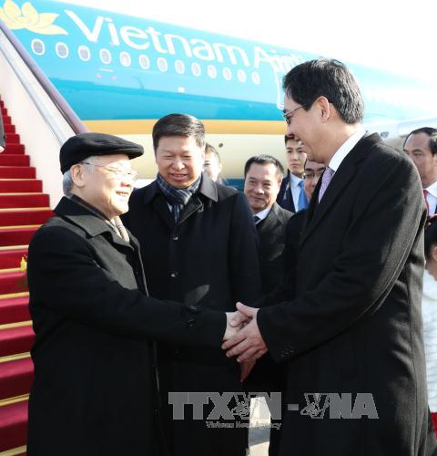 中共中央对外联络部部长宋涛等来到机场迎接阮富仲总书记
