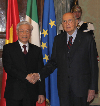 阮富仲总书记和意大利总统乔治纳波利塔诺。 |