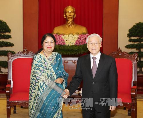 越共中央总书记阮富仲会见孟加拉国国民议会议长希林·沙尔敏·乔杜里——图片:越通社 |