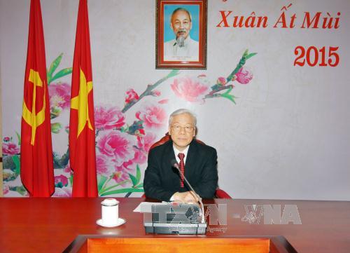 阮富仲总书记对中国经济社会发展和法治国家建设取得的成就表示祝贺,向习近平致春节问候,庆祝中国人民新春快乐。