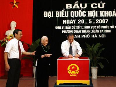 农德孟总书记在第十二届全国人大代表选举投票——图片:VNA |