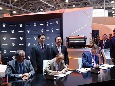 随后,在武辉煌部长和俄罗斯国营石化集团(Rosneft)首席执行官Igor Sechin的见证下,扎鲁别日石油公司总经理Alexander Kudasov和越南国家石油集团(Petrovietnam)总经理杜文厚签署了在越南大陆架富庆盆地125号和126号石油区块地质研究合作备忘录。