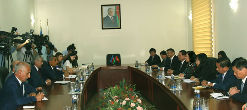 会见马哈茂德·马米德 - 古利耶夫时,双方就共同关心的国际和地区问题以及如何提高两国合作效率、将双方高层所达成的共识落实到处、将双边贸易额提升至10亿美元等展开讨论。