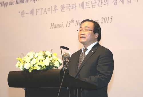黄忠海副总理强调了过去以来两国在融入经济一体化进程的重要里程碑,其中2015年年中,越南韩国已经签署自由贸易协定。黄忠海副总理认为,这是越韩两国企业、投资者继续扩大合作,加强贸易往来的大机会,旨在利用各自优势以互利合作共赢,尤其是加强在基础设施、农业、辅助工业、高科技及能源等领域的合作。