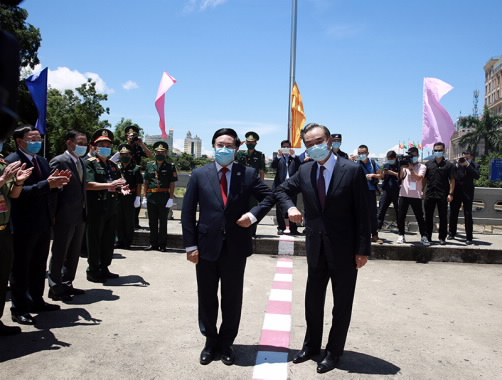越南政府副总理兼外交部长范平明与中国外交部长王毅合影 |