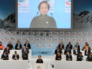 国家副主席阮氏缘在23日召开的法语国家组织首脑峰会上致辞——图片:TTXVN |