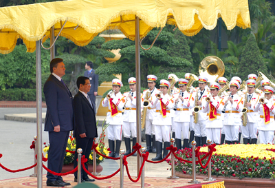 3月26日上午在主席府迎接乌克兰总统的正式仪式——图片:政府门户网站 |