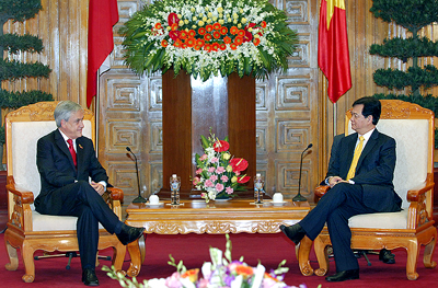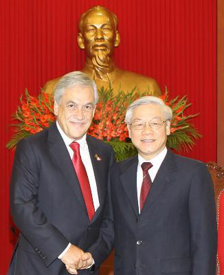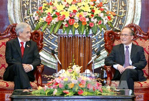 皮涅拉总统肯定智利将竭尽全力致使越南和智利双方自由贸易协定有效实施;同时为越南商品易于进入智利市场营造顺利。