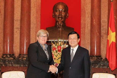 越南国家主席张晋创8月25日在主席府会见访越的和世行可持续发展事务副行长雷切尔·凯特。