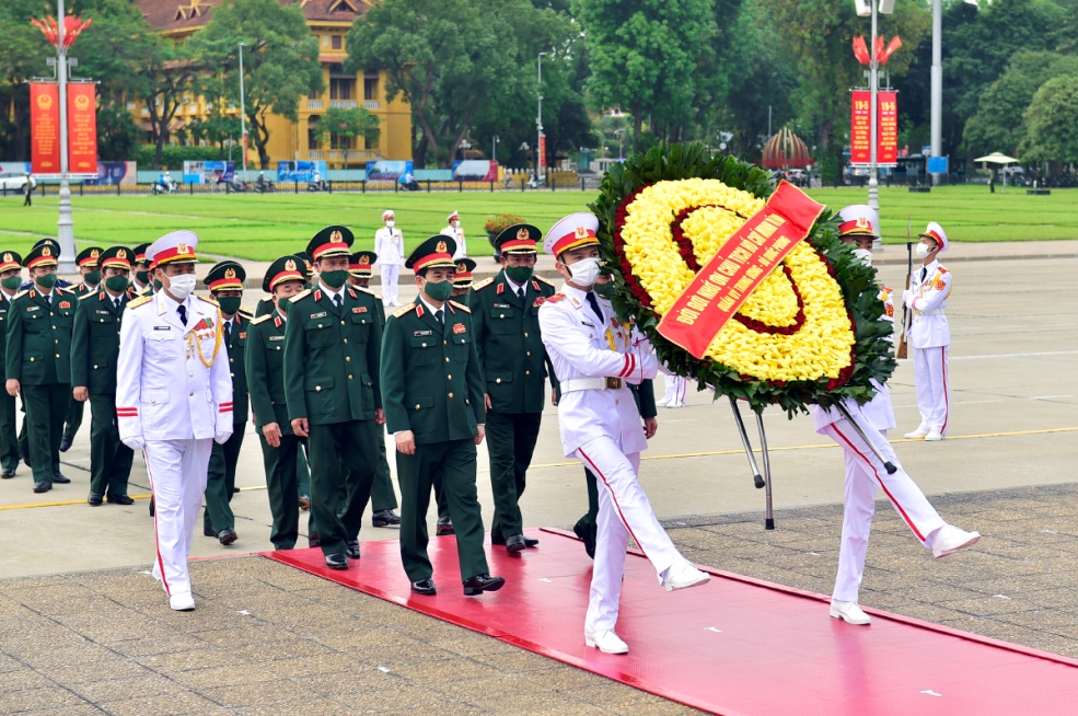 中央军委和国防部代表团拜谒胡志明主席陵墓——图片:VGP/日北 |