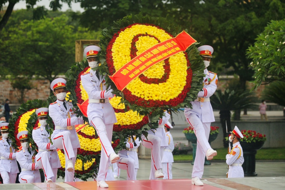 同日上午,中央军委和国防部,中央公安党委和公安部,河内市委、人民议会、人民委员会等代表团前往胡志明主席陵墓敬献花圈,并前往英雄烈士纪念牌为烈士英雄们上香。