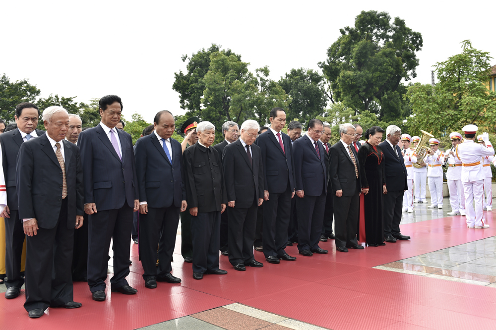 越共中央总书记阮富仲,前越共中央总书记黎可漂、农德孟,国家主席陈大光,前国家主席陈德良,政府总理阮春福,前政府总理阮晋勇,国会主席阮氏金银,前国会主席阮文安,越南祖国阵线中央委员会主席陈青敏等来到胡志明主席陵,瞻仰胡志明主席遗容,共同缅怀他老人家的丰功伟绩。