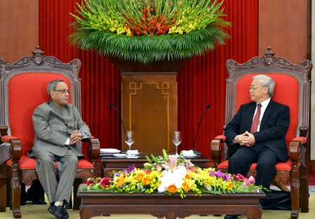 会见中,阮富仲总书记和国会主席阮生雄对普拉纳布·慕克吉总统此访的重要意义给予高度评价,并相信,普拉纳布·慕克吉总统此访将是推动越印两国传统友好、战略伙伴关系迈上新台阶的重要里程碑。