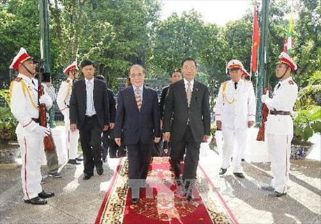 越南国会主席阮生雄与缅甸联邦议会议长兼人民院议长吴瑞曼 |