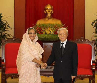 阮富仲总书记强调,孟加拉国总理谢赫•哈西娜和孟加拉国代表团的此访是加强越孟友好传统和各方面合作关系的重要里程碑。