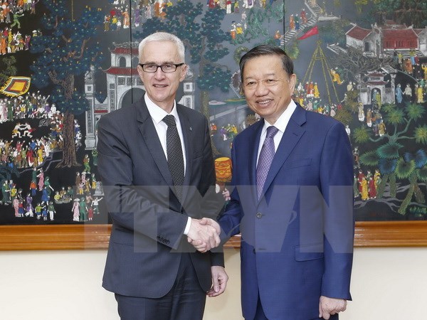 越南公安部部长苏林上将与国际刑警组织秘书长于尔根·施托克——图片:越通社 |
