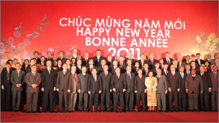 出席外交使节]团2011年新春招待会的代表们合影——图片:政府门户网站 |