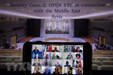 联合国安理会成员国各位大使召开视频会议解决叙利亚政治问题——图片:越通社 |