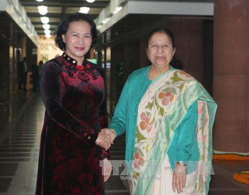 阮氏金银主席与印度人民院议长苏米特拉·马哈詹——图片:越通社 |