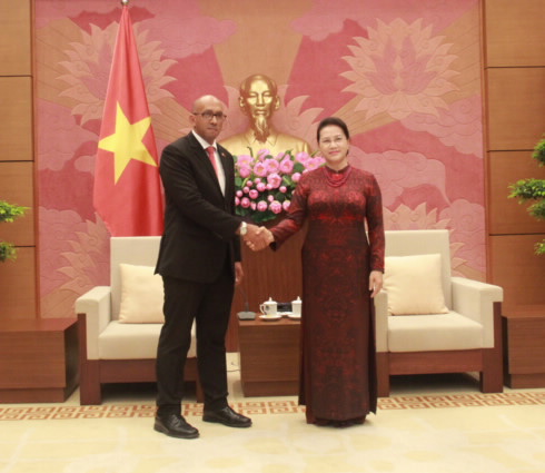 会见中,阮氏金银主席高度评价Hermenio Lopez Diaz大使所携手推动越古两国和两个国会的特殊传统关系发展和两国合作结果。