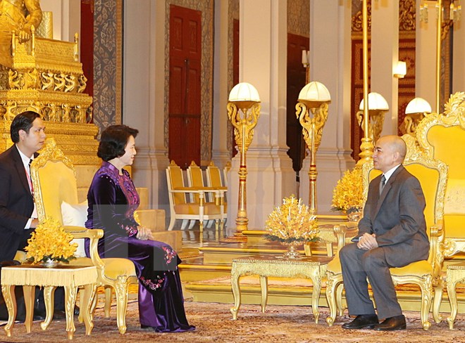 阮氏金银主席拜访柬埔寨国王诺罗敦·西哈莫尼——图片:越通社 |