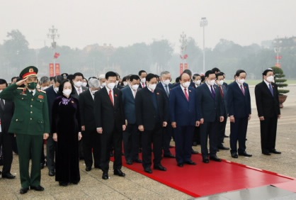 越南党、政府、祖国阵线领导及与会代表前往胡志明主席纪念馆上香鲜花 |