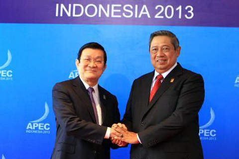 印度尼西亚总统苏西洛·班邦·尤多约诺热烈欢迎越南国家主席张晋创出席APEC 21峰会。 |