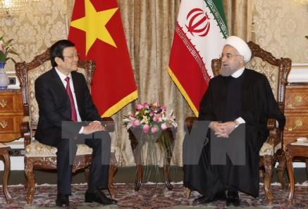 张晋创主席与哈桑·鲁哈尼总统强调,越伊两国具有相同的历史环境,两国人民相互支持,这是推进两国关系发展的基本基础。两位领导人就越南伊朗传统友好关系在良好发展表示满意。