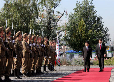 匈牙利总统阿戴尔·亚诺什为越南国家主席张晋创举行欢迎仪式。 |