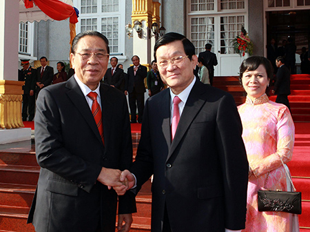 国家主席张晋创和老挝总书记、国家主席朱马里赛雅颂 |