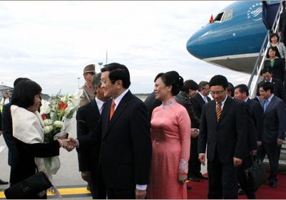 越南国家主席张晋创抵达匈牙利首都布达佩斯。 |