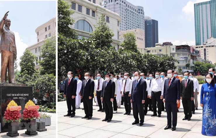 国家主席阮春福在胡志明主席塑像敬香