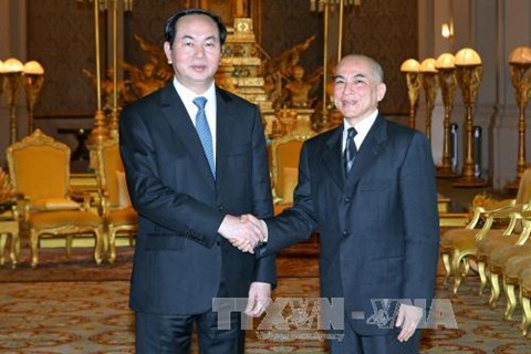 诺罗敦·西哈莫尼国王视越南国家主席陈大光对柬埔寨访问之事为推动两国友好全面合作关系深入发展的重要事件。