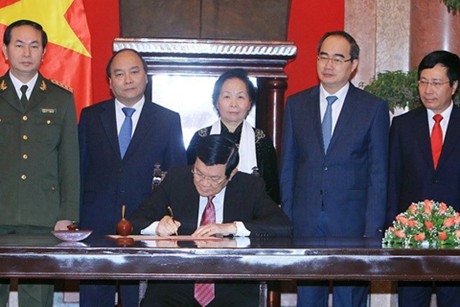 越南国际主席张晋创签署宪法公布令。——图片:越通社 |