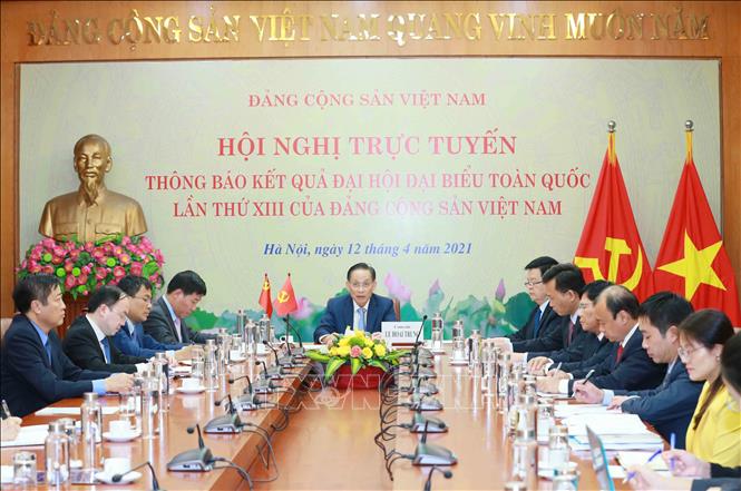 越共中央委员、中央对外部部长黎怀忠主持召开视频会议,向中国共产党通报关于越南共产党第十三次全国代表大会结果——图片:越通社 |