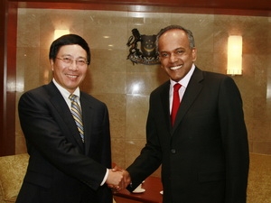 新加坡外交部长尚穆根会见越南外交部部长范平明——图片:越通社 |