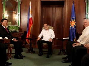范平明部长向阿基诺总统介绍了自越南-菲律宾双边合作委员会第6次会议以来两国关系所取得的进展,范平明说,双方在政治、外交、经贸、投资、海洋、农业、渔业等领域的合作取得显著成效,希望越南-菲律宾双边合作委员会第7次会议将提出多项措施,推进两国关系深入发展。