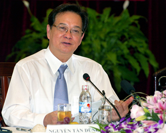 阮晋勇总理表示将继续贯彻落实11号决议,并希望能得到国际社会的支持和合作——图片:政府门户网站 |