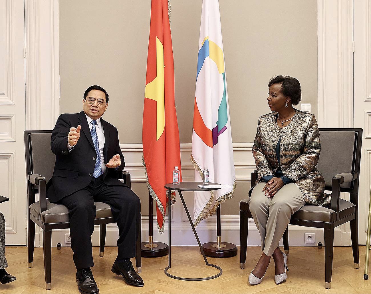 11月5日上午(巴黎时间),在正式访问法国之际,越南政府总理范明正到访法语国家组织总部,并会见法语国家组织秘书长路易丝·穆希基瓦博(Louise Mushikiwabo)。