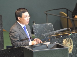 据越通社报道,9月28日上午(越南时间),在美国纽约召开的第66届联合国大会全体会议上发表讲话时,范平明外长强调,越南将坚定不移地贯彻执行越南共产党第十一届大会所制定的经济社会发展战略、全面改革路线和全面主动融入的对外政策,同时越南愿积极、主动参与国际社会共同关注的工作。